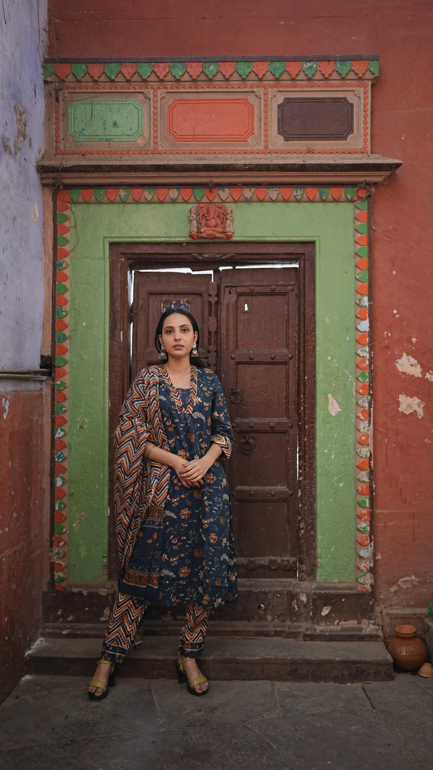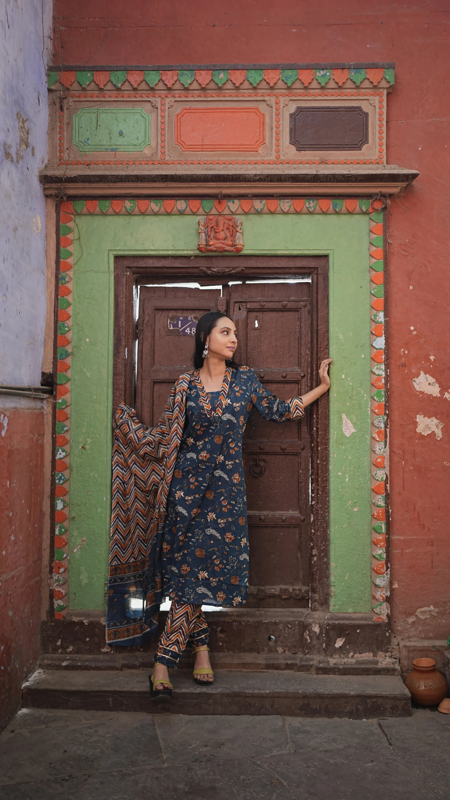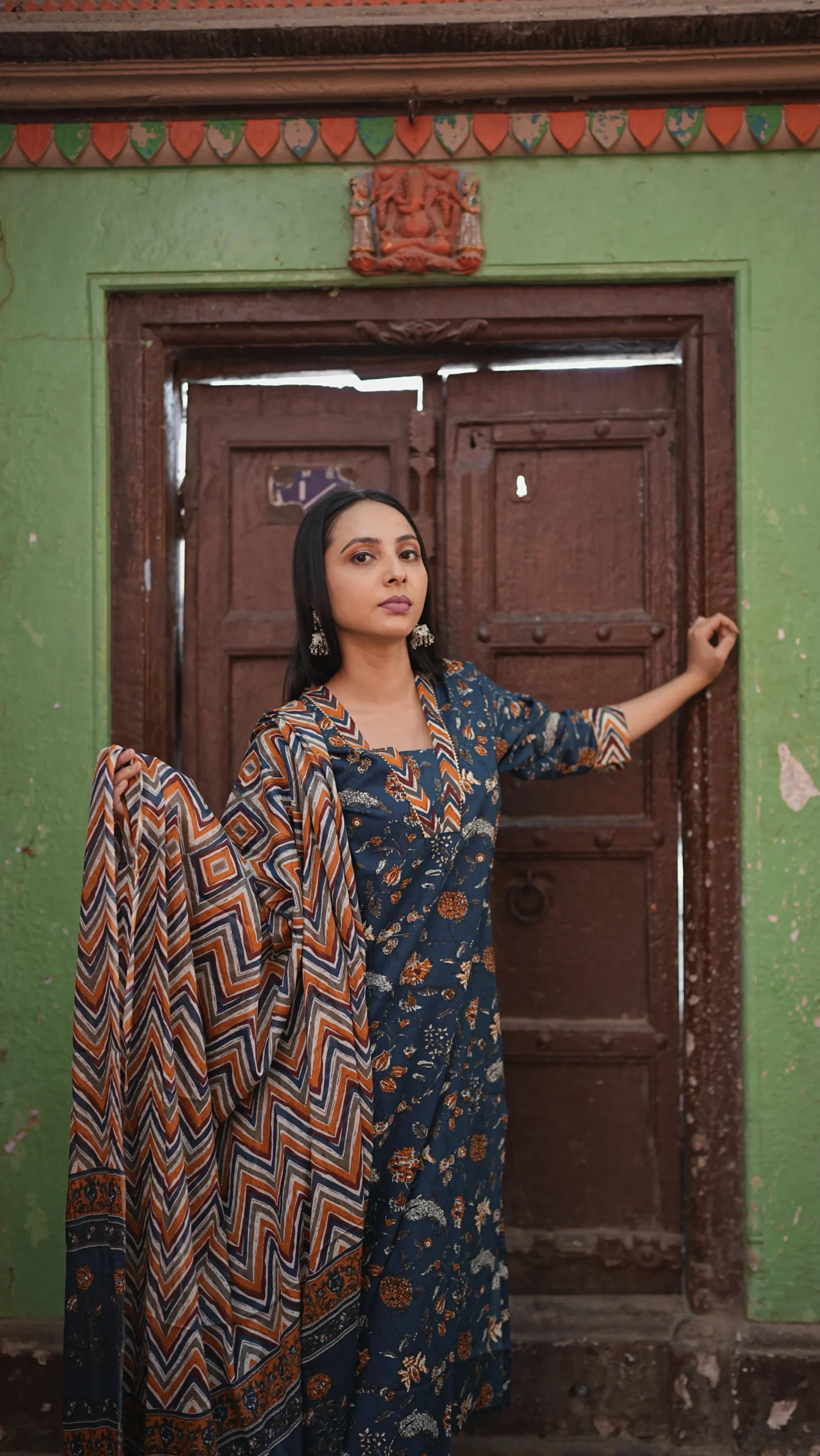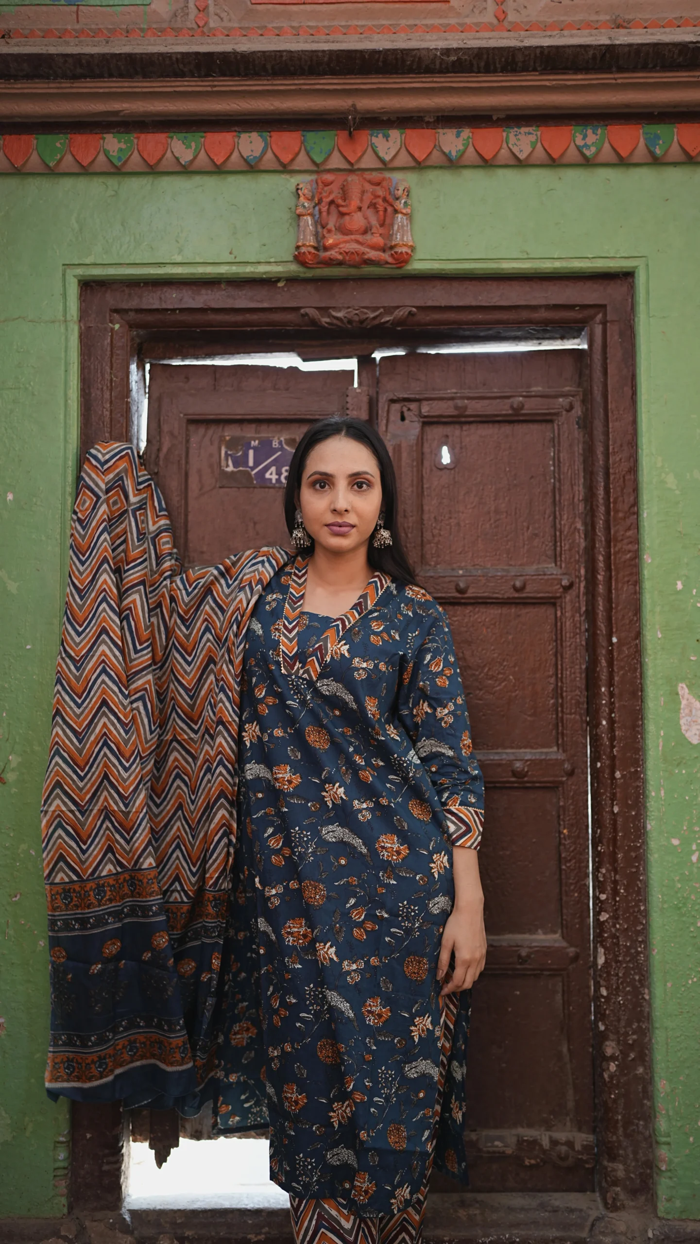 Blue authentic Jaipuri print suit set from Jaipur, paired with a matching dupatta and pant style lower.Vibrant, comfortable, and rich in Jaipuri charm.