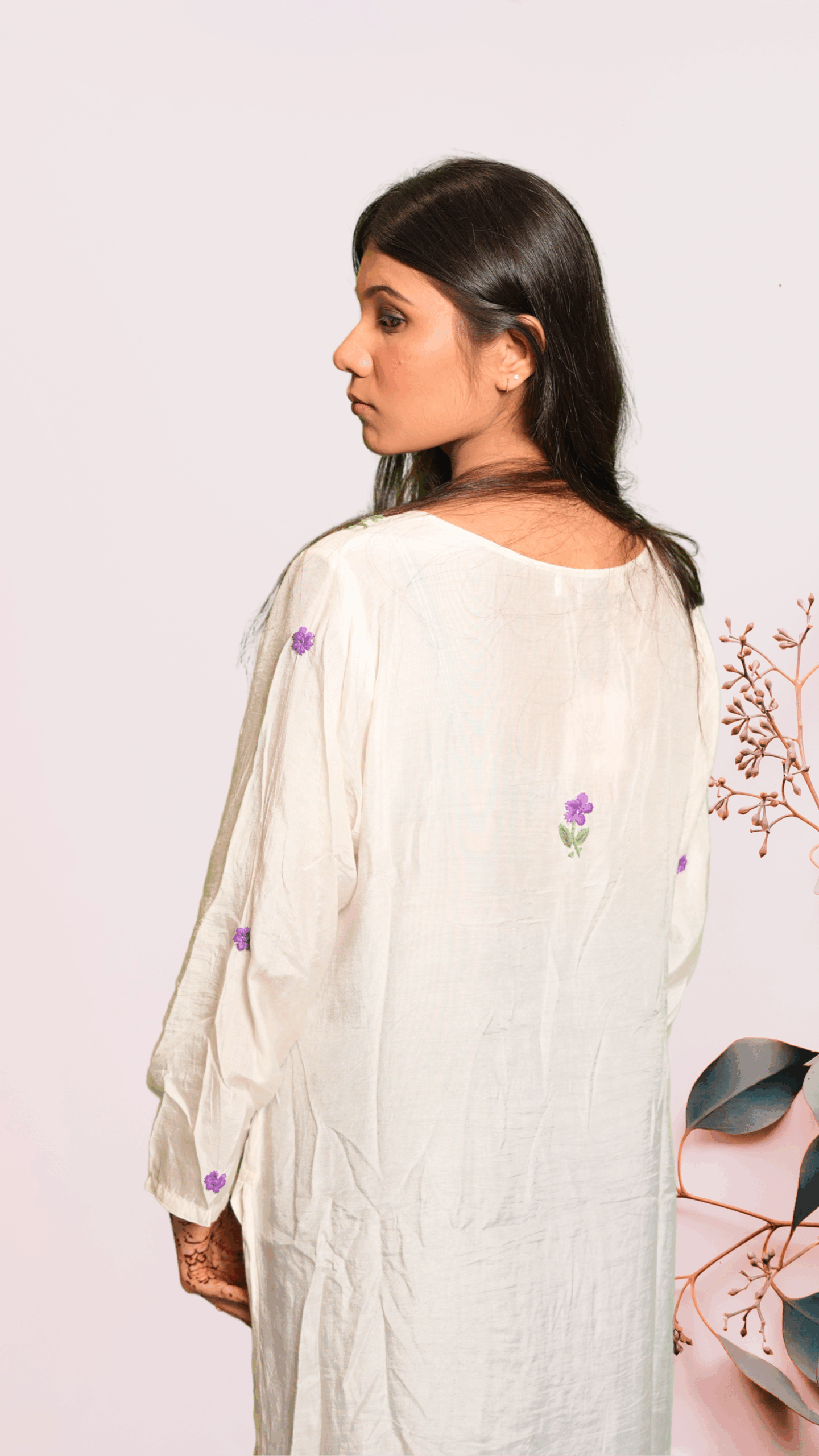 A timeless white kurta featuring delicate hand-embroidered chikankari with dual-thread work in